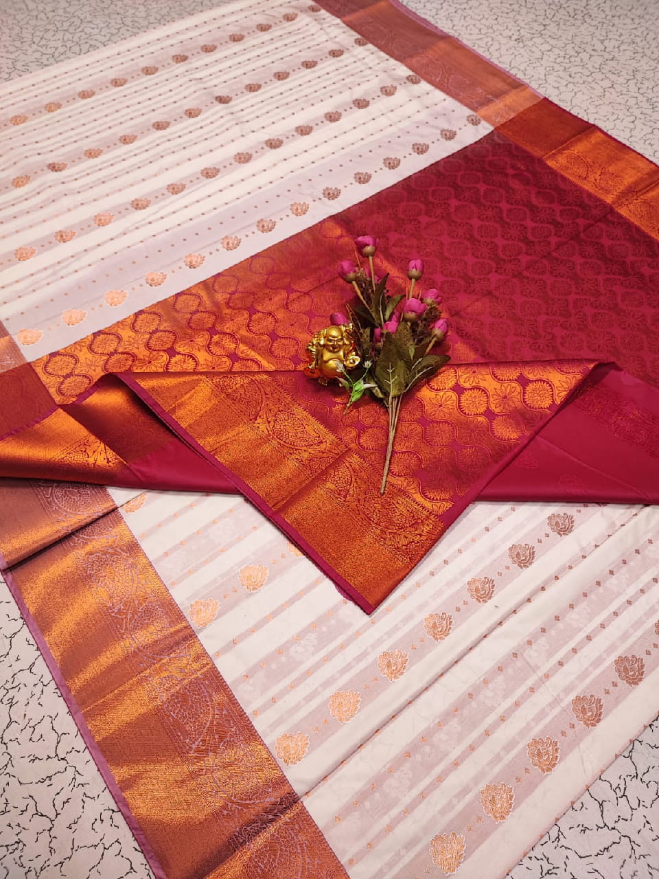 Ivory Saree – Deep Crimson Weaving